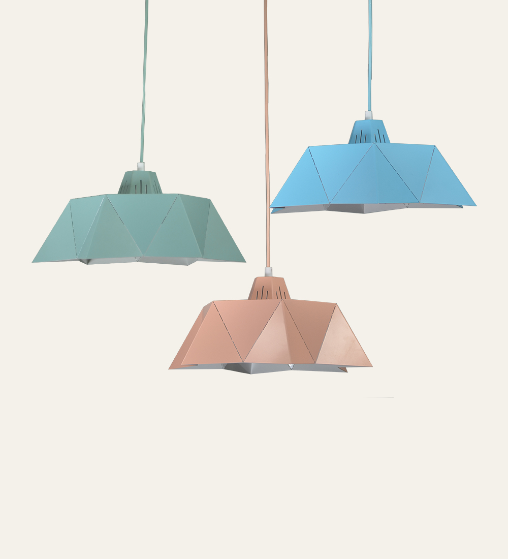 Illuminate your space with a modern flair using this striking geometric pendant light. Each lamp features a unique multi-faceted shade design, creating captivating angles and shadows. The pendant light comes in a stylish pastel color palette of light blue, coral pink, and mint green, adding a subtle yet playful touch to any room. Suspended from slender cords in matching hues, these pendant light is ideal for creating a focal point above a dining table, kitchen island, or in a living area. Their contemporary design and soft colors make them a versatile addition to various interior styles.